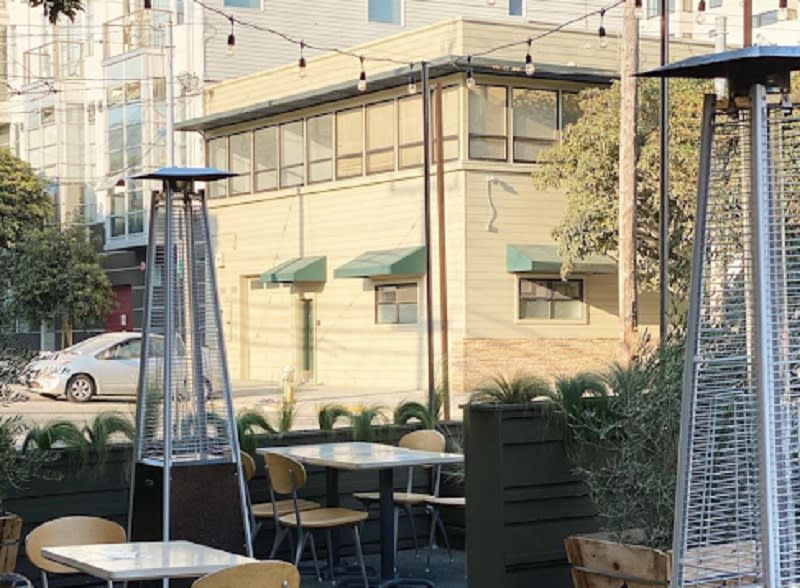 Horsefeather got creative building their parklet. Situated in front of the restaurant, this area features a tin roof and eating “cubicles” separated by wooden walls. Parties can feel private and comfortable in these individual booths. The restaurant continues to serve the New American cuisine for which it’s known. And don’t snooze on their cocktail menu! The California Cooler might just be calling your name.