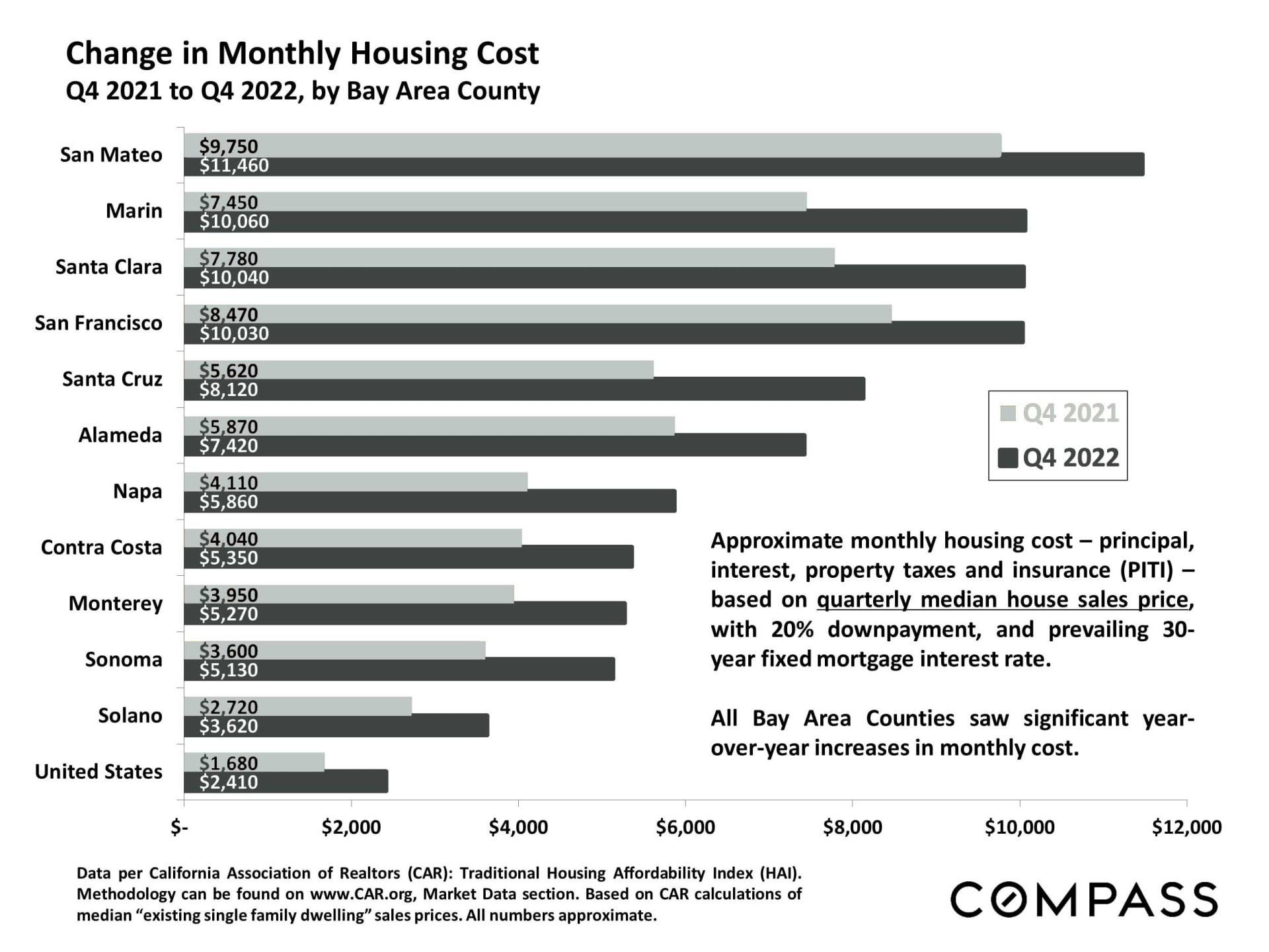 In terms of housing affordability, where is what to expect, based on the purchase of a median priced house, using a 30-year fixed-rate loan with a 20% down payment. All counties saw substantial increases in monthly housing costs.